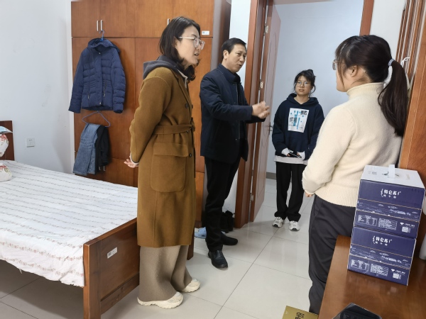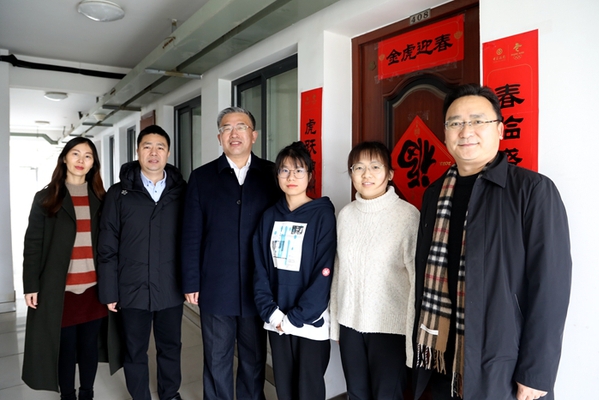 春节期间,校党委副书记、校长崔景贵,校党委副书记周兰珍,校学生工作处领导以及人文学院党政领导、辅导员班主任等先后来到学生公寓,看望了留校过年的强诗雨同学,并关心了她的生活、学习等情况,亲切嘱咐春节在校期间要注意安全、保重身体,要和家长、老师保持联系,还转达校党委书记朱林生的新年问候和祝福。他们送上了精心准备的慰问品,并祝愿两位同学度过一个快乐而有意义的春节。(图/韩舒立等;文/张婷;审核/李晓曼;编辑/张婷)