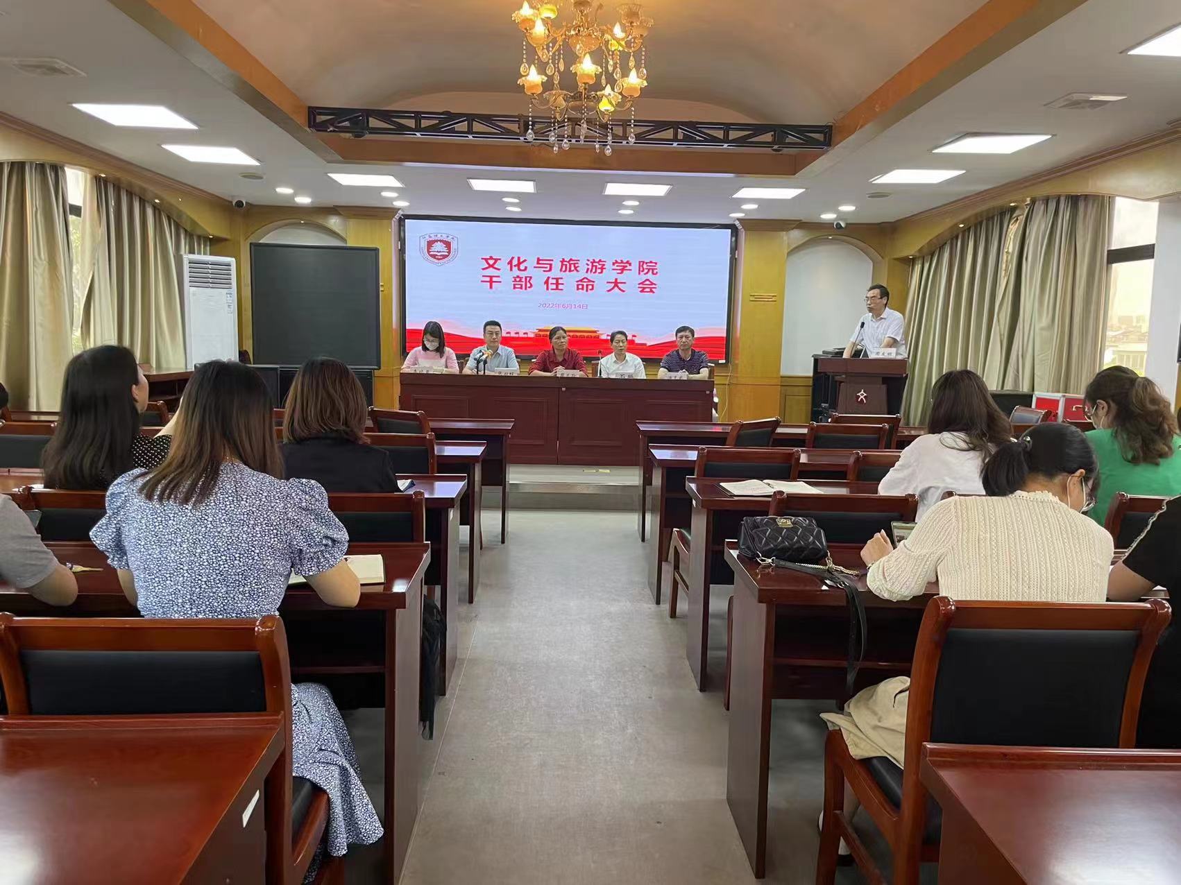 会上,石飚宣读任命文件:张羽程同志任文化与旅游学院党委书记,演克武同志任文化与旅游学院院长,李晓曼同志任文化与旅游学院党委副书记兼副院长。免去周友明同志人文社科学院党总支书记职务。