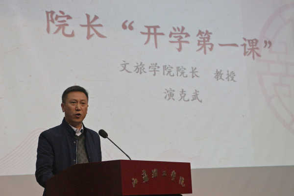 演克武为新生们上“开学第一课”,对同学们的到来表示热烈的欢迎和由衷的祝贺,与同学们分享了“我是谁?”“我从哪里来?”“我要到哪里去?”“我应该怎样去?”四个哲学命题。他鼓励全体新同学尽快完成身份的转换,学会独立,完成心态的转换,学会自立;树立“止于至善”的奋斗方向,习得自信、坚韧、感恩的良好品质。他期许全体新生以“心灵美”来“修身”,以“日子富”来“齐家”,以“能力强”和“自信程度高”来创新发展,立足岗位,报效国家而“平天下”。他寄语同学们坚持向上,于高山之巅,享受八面来风;坚持豁达,此心安处,即是吾乡。不忘初心,始终如一;成长为有方向、有定位的新一代大学生。