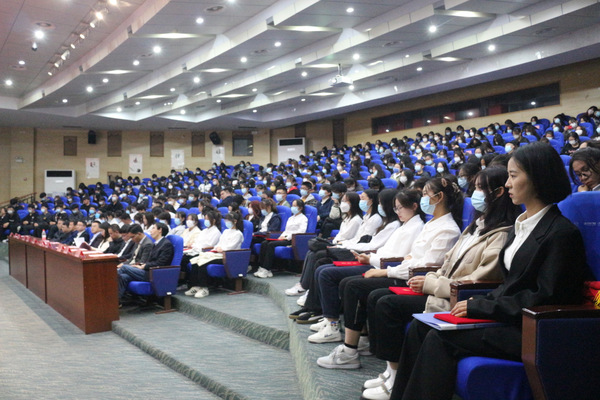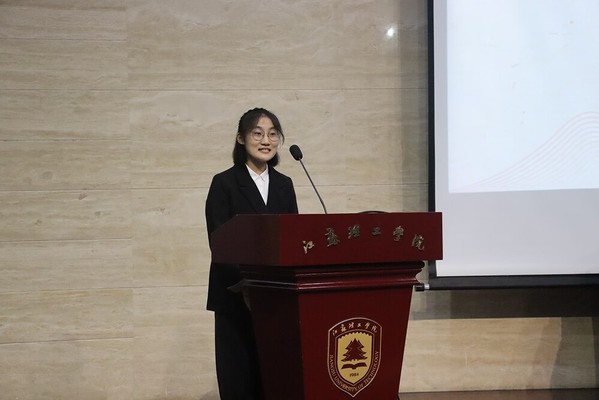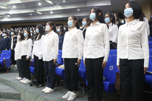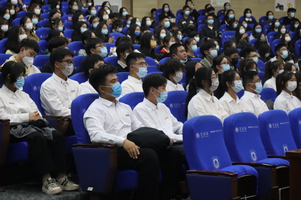 新生代表2022中文4S班刘璐进行了发言,她代表新生表达了对大学新的学习生活的向往和憧憬,以及不负自我、不负青春的决心。在校生代表2019级中文3S的金天然分享了自己的大学成长和经历,向2021级新生传递勇担当、勤奋斗的正能量。2017届秘书学专业校友、现任荣耀公司中国区产品经理蔡尚益校友通过视频的方式送上祝福,与大家分享了毕业初于柬埔寨孔子学院任教、求学的经历,鼓励学弟学妹们要尽早树立目标,合理规划时间,注重社会实践,做有主见不盲从,勇于拼搏的新青年。