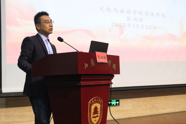 为进一步提高新生思想觉悟,增强新生对党的认识,激发新生的入党积极性,端正入党动机,鼓励新生以实际行动积极向党组织靠拢,10月26日晚,2022级新生典礼闭幕后,文化与旅游学院新生入党启蒙教育暨书记上党课于图书馆北报告厅开讲,学院党委书记张羽程主讲,学院全体辅导员及2022级新生共同听讲。