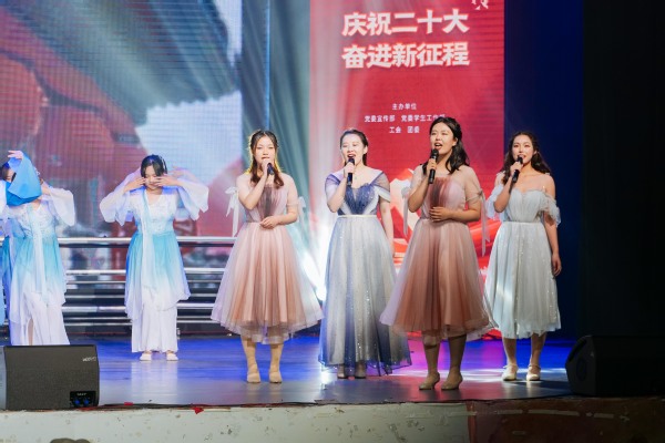 本次文艺演出由党委宣传部、党委学生工作部、校工会、校团委联合主办,师生同台演绎14个精彩节目,并穿插抽奖互动环节,文艺汇演亮点纷呈,用师生喜闻乐见的形式和语言,唱响爱党爱国爱社会主义的时代主旋律,扎实推动党的二十大精神入心入脑,激励师生踔厉奋发、勇毅前行、敢为善为、勇挑大任,奋力谱写特色鲜明全国知名高水平应用型大学建设新篇章。(图/孔祥建、校大学生通讯社摄影部)