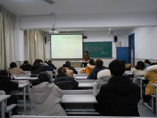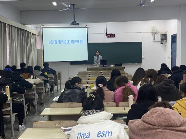 各位班主任老师首先总结了本学期班集体的成绩与不足,强调了诚信考试在班集体工作中的重要性,并和同学们再次学习了《江苏理工学院学生违纪处分实施细则》中关于考试违纪的相关内容。针对大学英语四六级考试、期末考试、研究生入学考试、教师资格证面试等,各位班主任建议学生干部和党员、入党积极分子要起到先锋模范作用,在考试中带头遵守考试纪律。提醒同学们合理安排复习时间和节奏,提高复习质量和效率,希望每一名学生端正学习态度,认真备考,诚信应考。会后,各班级组织学生签署《文旅学院诚信考试承诺书》。