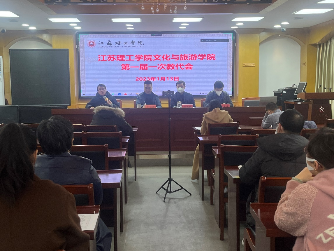 为进一步保障广大教职工合法权益,参与学院民主管理。1月13日上午,文旅学院采取线上、线下结合的方式召开第一届一次教职工大会,校工会副主席王亚萍应邀出席开幕式,学院党政领导、全体教职工参加了会议,会议由院工会主席丁军伟主持。