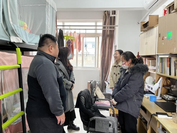 为深入贯彻落实学校安全稳定工作要求,进一步做好新学期学生管理工作,第一时间了解和掌握学生返校后的思想、学习和生活情况,2月19日,我院党委副书记兼副院长李晓曼带领辅导员走访学生宿舍,为学生送去关心和问候。