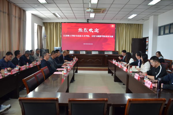 文化与旅游学院领导介绍了学院的历史沿革、发展现状、专业概况等,以及学院开展新文科建设的探索,推动原有专业改造升级方面的举措,特别是在人才培养、学生就业,尤其是破解中文(师范)就业挑战等难题的创新做法。表示在党建“强基创优”建设标杆院系、样板支部、课程思政等领域,有诸多需要向兄弟高校学习之处。