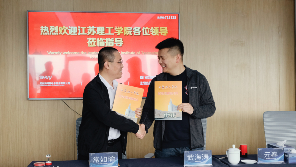 常州诗唯雅电子商务有限公司总经理武海涛致辞并介绍企业情况,乐见企业与学校高效推进产学研合作事宜。