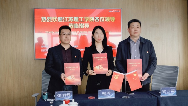常州市电商协会党支部书记郑玲与艺术设计学院党委书记钱云福、文化与旅游学院党委书记张羽程签订三方党建共建协议。