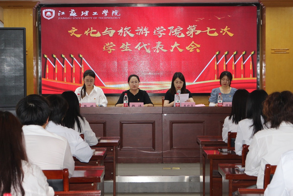 为学习宣传贯彻党的二十大精神,稳步推进我院学生组织建设,实完善学生会组织建设,服务好广大师生,6月9日我院在人文楼404会议室召开江苏理工学院文化与旅游学院第七次学生代表大会。出席会议的领导有:校团委副书记韩洁、院党委副书记兼副院长李晓曼、院团委书记张婷、院团委副书记顾静雯、校学生会主席团代表刘景毓、第六届学生委员会成员、学生代表等。