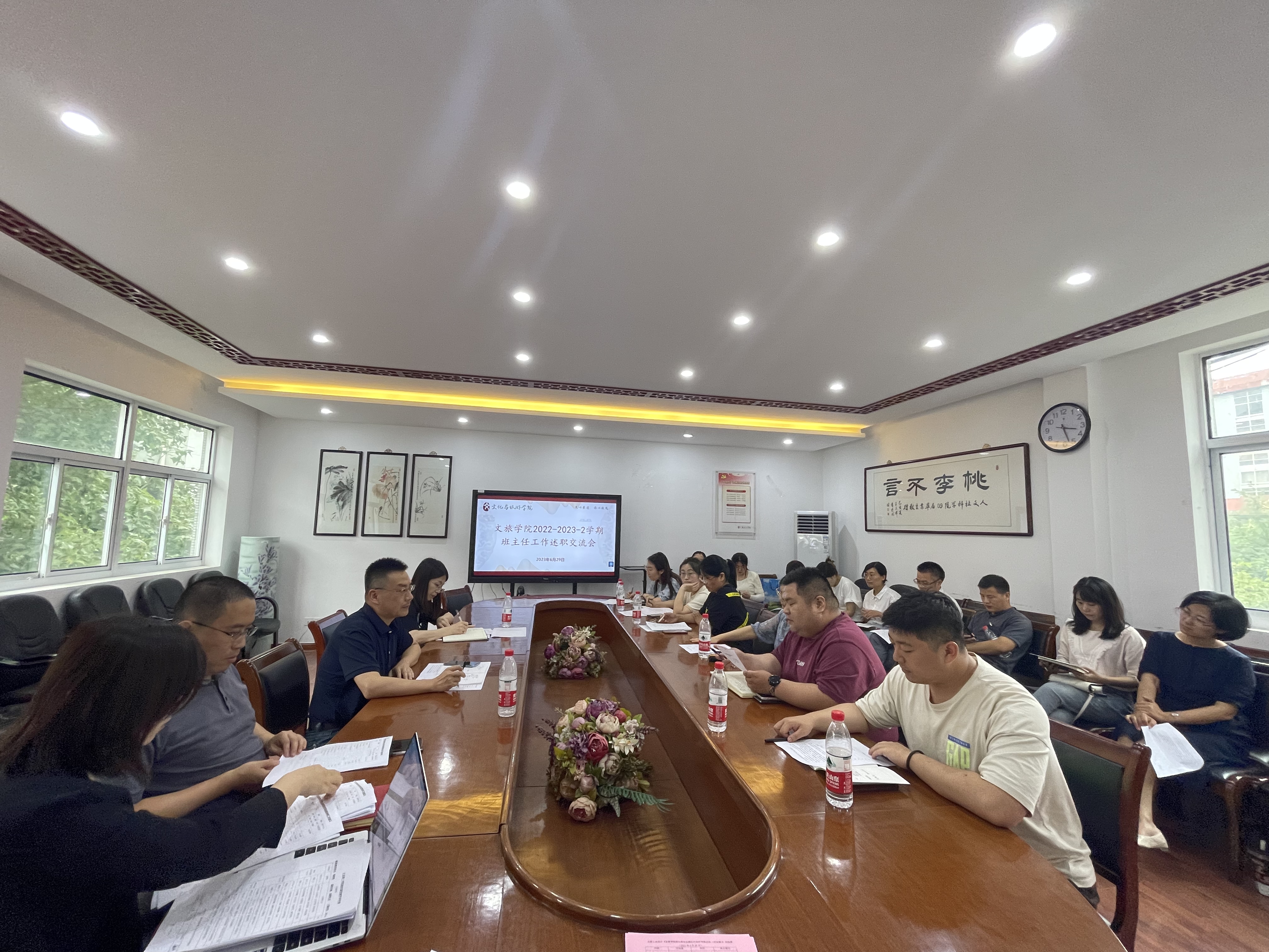 629日,文化与旅游学院在人文楼222会议室召开2022-2023-2学期班主任工作述职交流会,学院党委书记张羽程、副院长常如瑜及全体班主任出席本次会议,大会由学院党委副书记、副院长李晓曼主持。