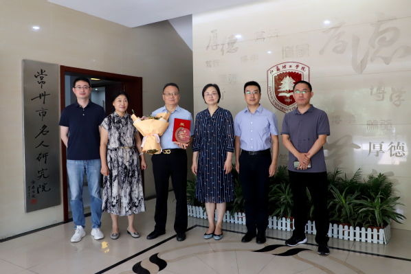 俞亚萍代表学校对光荣从教三十年的赵贤德老师表示热烈祝贺,并为其颁发了证书、纪念杯并赠送鲜花和慰问品。赵贤德结合自身从教30年的经历,与领导们谈体会谈感想。感慨着学校三十年来发生的巨变,感谢学校的培育使自己成长,并表示:会一如既往地做好工作,肩负起常州名人研究院名人故事宣讲和挖掘的工作,为文化传承发展尽一份力,学校高质量发展贡献力量。