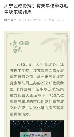 天宁区政协携手学校、企业、团体共同主办2023“毗陵我里 宋韵国风”迎中秋东坡雅集活动