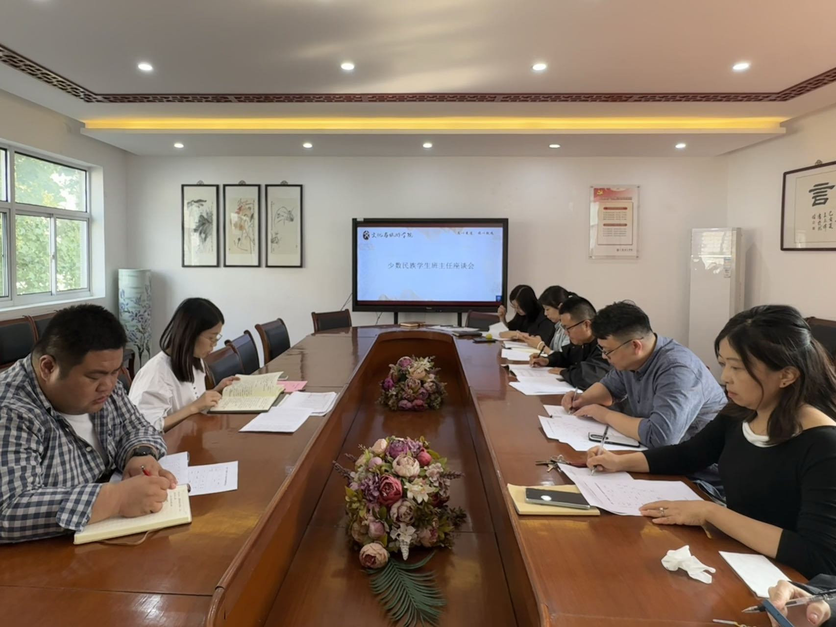 辅导员陈宝介绍了学院目前少数民族学生整体情况,并和与会教师就班级少数民族学生工作开展的方法、举措和经验等进行了研讨。