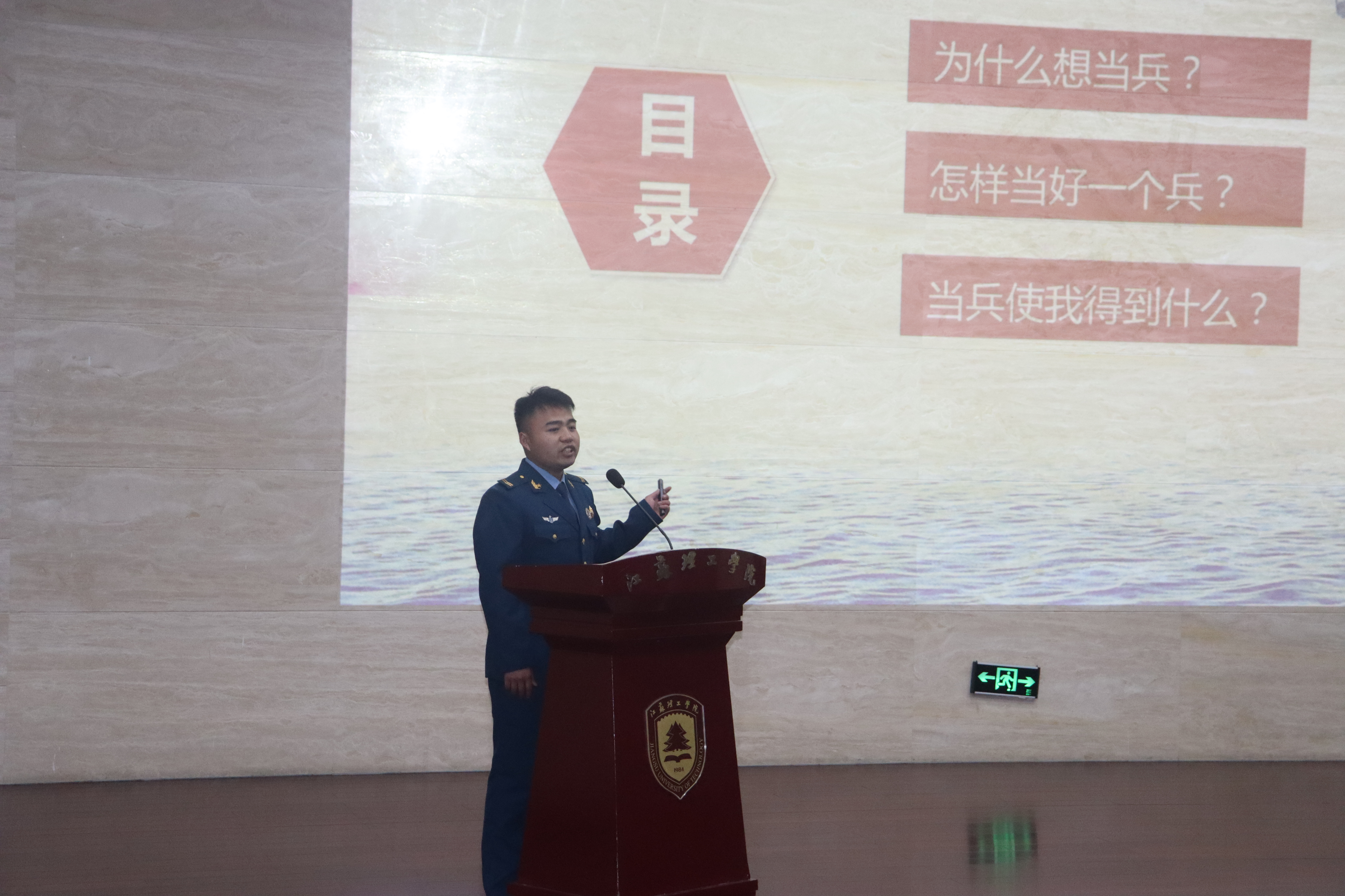 19秘书郭学威以《以梦为马,不负韶华》为题,围绕“为什么当兵、样当一个好兵、当兵使我得到了什么”三个问题展开,分享了在部队体能训练、站岗执勤和野外训练等的故事,三次住院,多次受伤,真实再现了部队生活的酸、甜、苦、辣,分享了自己入伍后身体和思想上的蜕变。