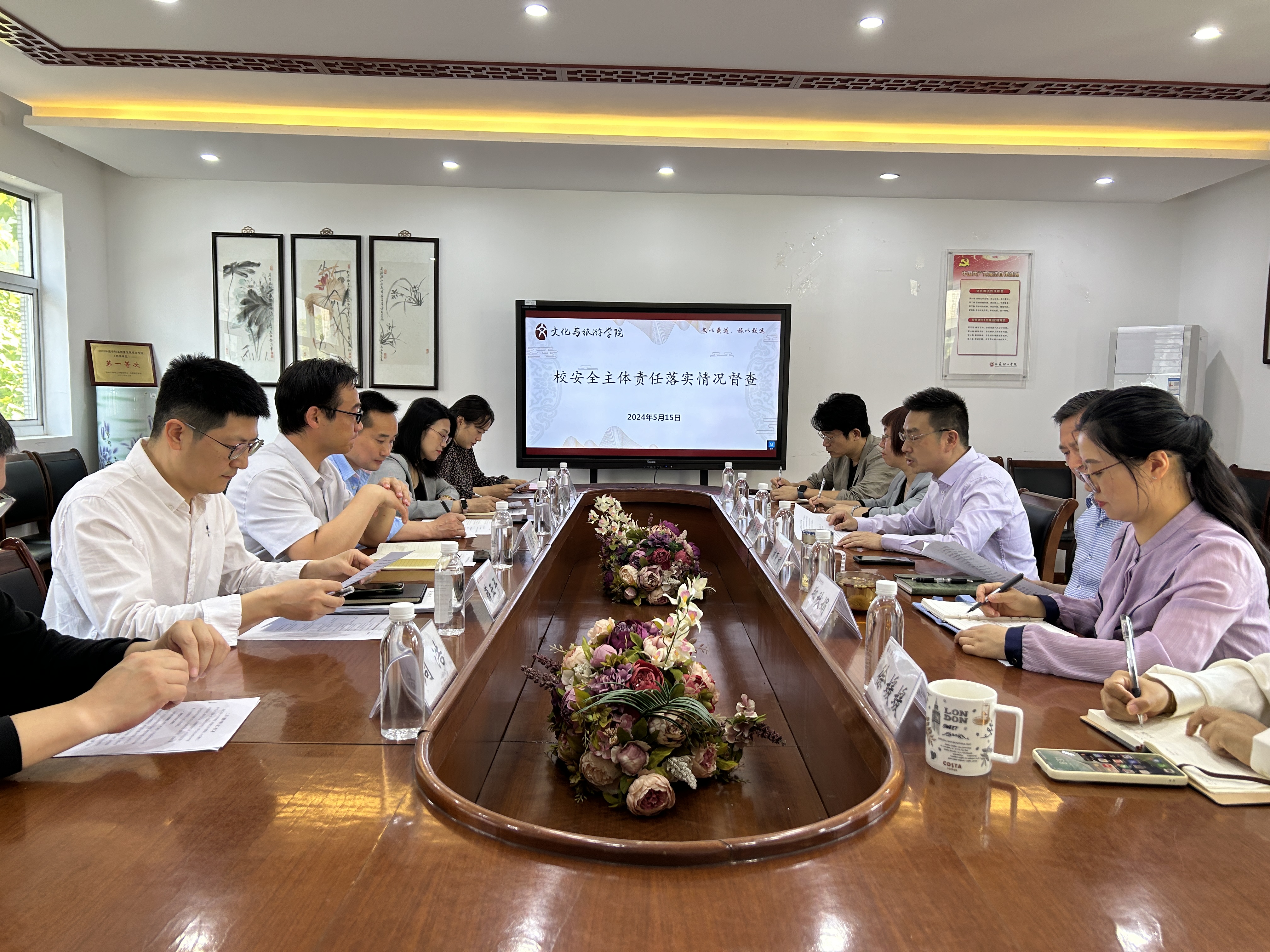 2024年5月15日上午,由校党委常委、副校长范洪辉带队的学校安全主体责任落实情况督查组来文化与旅游学院开展安全工作督查。督查汇报会由院党委副书记、院长演克武主持。