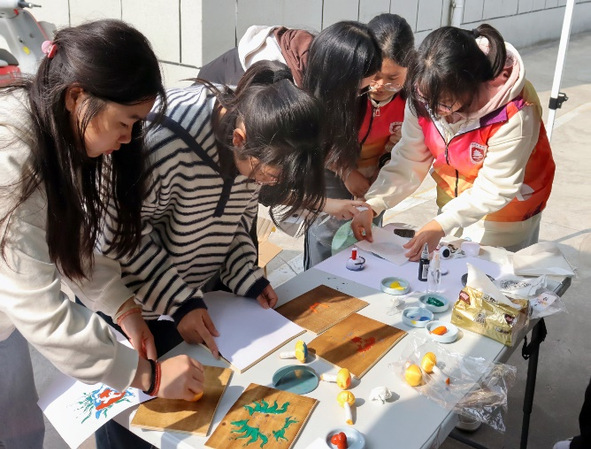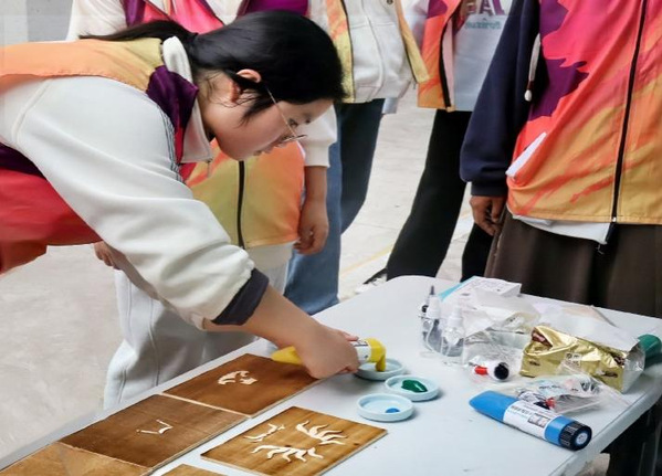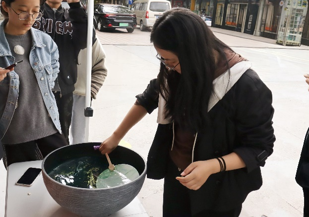 知识问答妙趣横生,漆扇制作身临其境。本次活动采用“智取问答+手工制作”的模式,向同学们科普“常州缘何是龙城?”。江南第一玉龙、金钟罩六龙、吴季生匜……问答环节将常州博物馆龙城特展的灵感转化为科普的题目,谈笑间加深了大家对常州龙城的理解。来往师生热情高涨,纷纷驻足参与,不仅深化了同学们对龙城悠久历史的认知,更成功地点燃了他们进一步探寻龙城文化底蕴的无限热情。