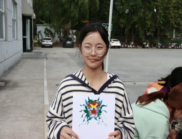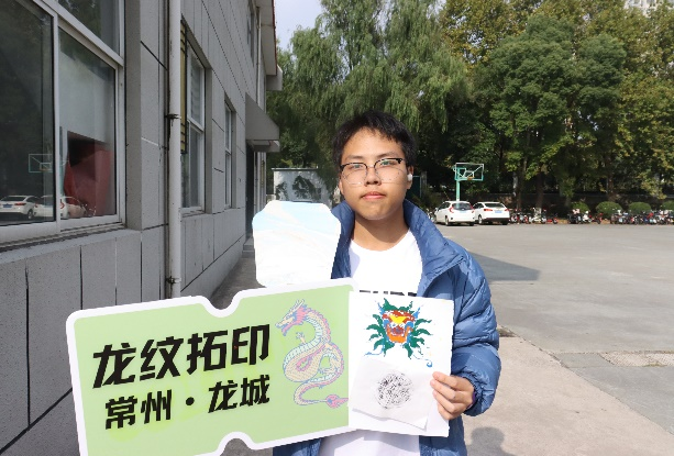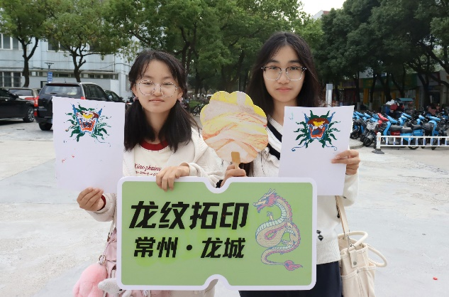 龙纹拓印韵味悠长,文化传承触动心弦。套色拓印采样于博物馆藏品海水龙纹景泰蓝大盘,龙纹与海水纹相称,寓意“龙游四海”。拓印伴着与“龙”有关的成语、典故、诗句。两两结对,储备比拼,黑墨描色润拓印,龙文化墨绘历史。这层层套印,正彰显了常州龙文化的深厚历史与丰富艺术内涵。本环节通过展现中国传统艺术的魅力,让同学们在色彩中更加真切地体味了龙文化。