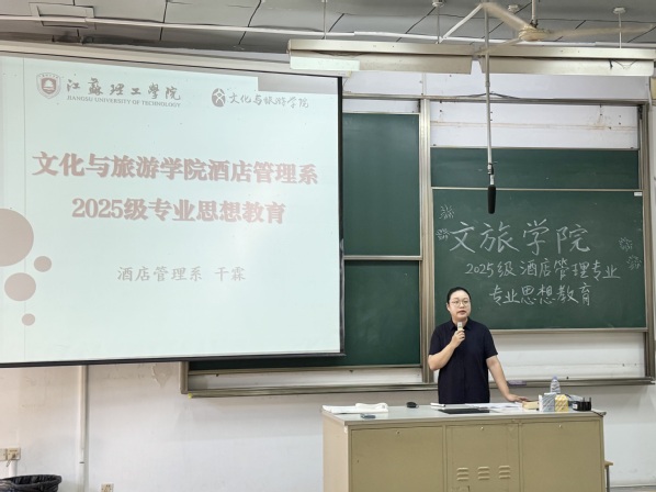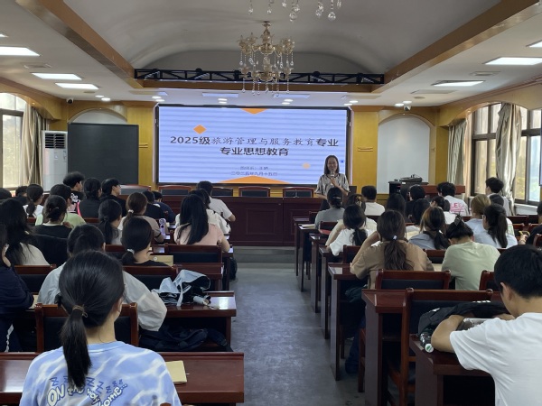 作为新生入学教育的“第一课”,大学新生专业思想教育承载着特殊意义——它不仅是帮助新生建立专业归属感、明晰学习方向的关键抓手,更在塑造四年大学成长轨迹、铺垫长远职业道路中扮演着“奠基石”角色,堪称开启高质量大学教育的重要序幕。9 月15日,文化与旅游学院针对2025级汉语言文学(师范)、旅游管理、旅游管理与服务教育(师范)、酒店管理四大专业新生,分别组织开展了专业思想教育。才峻、叶帅、王娟、干霖四位系主任亲自登台,用兼具深度与温度的讲解,为初入大学校园的新生们打造了一堂干货满满、指导性强的“专业入门课”。