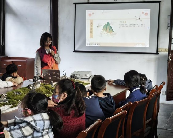 活动开篇,“文小青”王蒙恩以“时光回溯”的方式,开启重阳文化探索之旅。从战国时期的初步形成,到东晋的热闹兴盛,再到唐代被正式定为民间节日,重阳节的千年演变历程被娓娓道来。“阿牛寻菊治母眼疾”的温情典故,诠释了菊花节的由来;“桓景登高斩瘟魔”的传奇故事,揭秘了登高、插茱萸、饮菊花酒等习俗的起源。同时,王蒙恩特别介绍了1989年重阳节被定为老人节的渊源,让大家感受到传统节日与现代敬老理念的巧妙融合,理解重阳“尊老爱老”的核心内涵。