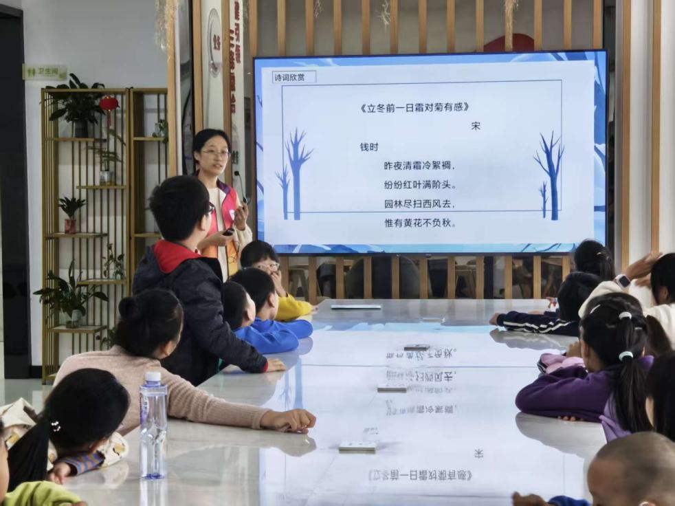 文学赏析环节,宋代诗人钱时的《立冬前一日霜对菊有感》引发共鸣,“昨夜清霜冷絮裯,纷纷红叶满阶头。园林尽扫西风去,惟有黄花不负秋”,诗句勾勒出立冬前夕的园林景致,也传递出坚韧不屈的文化气节,为活动增添了浓厚的文学气息。