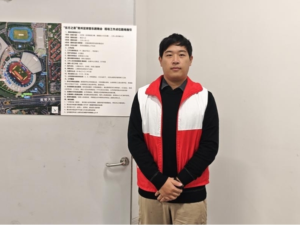 在台前的观众引导组,孙浩冉化身近3万观众的“动线指南针”,全程保障活动入场、场内服务、散场疏导三阶段顺畅:入场时在关键路口、通道引导观众前往检票口、安检区与看台,维护人流密集区域秩序;场内协助观众快速找座,并指引洗手间、餐饮点、医疗点等服务设施;散场时引导观众有序分批离场,配合安保人员实施临时人流管制,全力防范拥挤风险。孙浩冉分享道:“参与这次活动,我有不少真切体会。常州人民的热情格外打动我,无论是现场观众的积极配合,还是路人主动提供的帮助,都让我倍感温暖。同时,我近距离观察了大型活动观众引导工作的全流程,从动线规划到现场疏导的细节都清晰可见,这段实践不仅让我对该工作有了直观了解,更丰富了个人专业经历。”