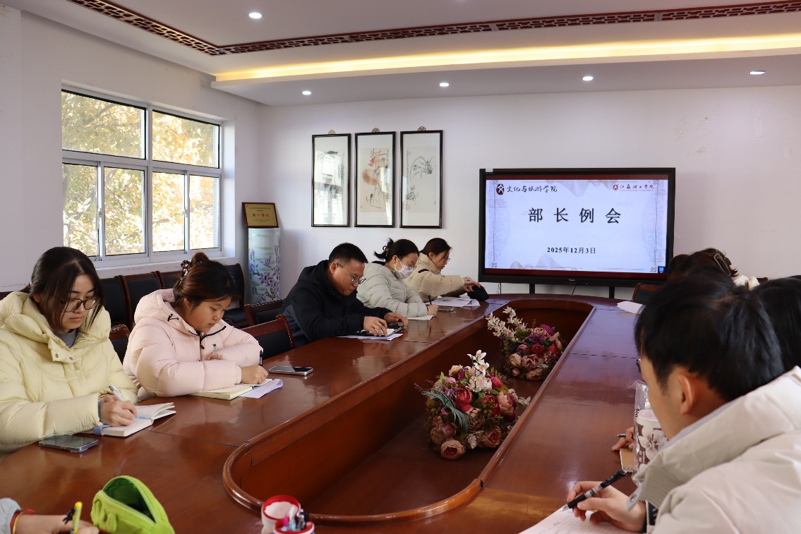 为了总结学生会近期工作中的经验教训,计划下一阶段的学生活动,文旅学院学生会于12月3日中午在人文楼222会议室召开了部长工作例会。学院团委书记产启东老师,院学生会主席团成员以及各部门部长参加,会议由学生会执行主席徐莹主持。