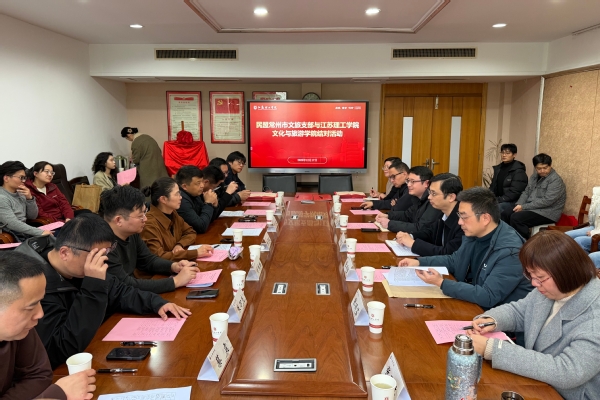 12月17日下午,民盟常州市文化和旅游支部与文化与旅游学院“盟校共建,赋能文旅”结对活动在厚德楼302会议室举行。校党委常委、统战部部长刘晓杰,常州市政协常委、民盟常州市委会专职副主委兼秘书长张翠娥、民盟常州市经济科技总支主委朱万先、民盟常州市文旅支部主委于达波等民盟盟员代表、文旅学院师生代表参加活动。文旅学院党委书记张羽程主持活动。