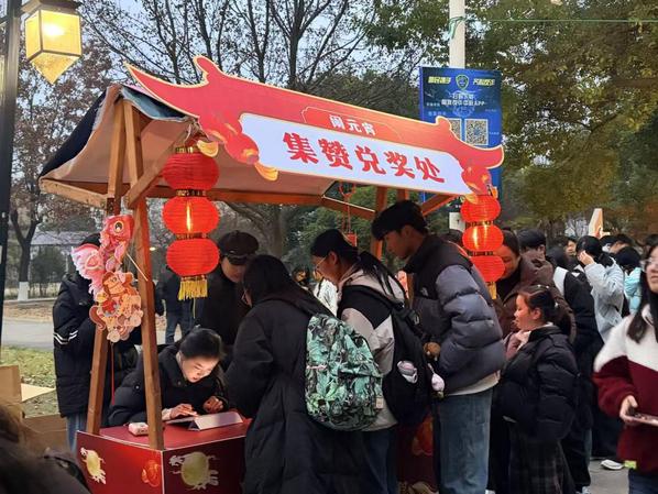 本次元宵活动亮点纷呈、趣味十足。行知路上灯火绵延,从商学院门口至凌波桥,千盏花灯次第点亮,传统宫灯雅致端庄,创意花灯灵动新颖,一步一景皆是上元盛景。红灯笼下,线上线下猜灯谜同步开展,吸引同学们驻足思索、踊跃应战;行知路旁亭内,古筝声声婉转悠扬,校内民乐高手现场演奏,弦音袅袅与灯海相映成趣,尽显传统文化之美。活动现场还设置了礼品兑换区,参与活动、完成任务即可兑换精美元宵文创与实用好物,让同学们在收获知识与快乐的同时,把节日好运带回家。