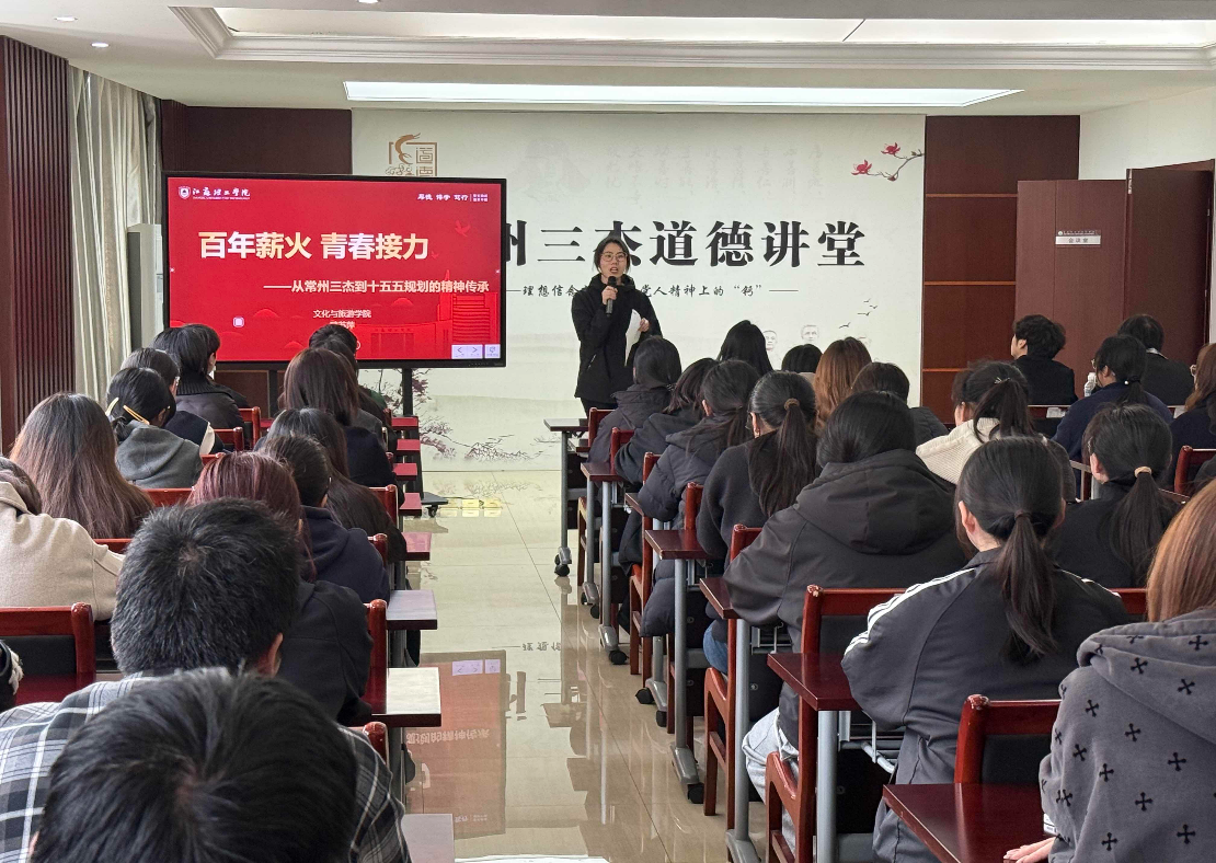祭扫仪式结束后,驻院思政导师周扬与学院辅导员魏苏萍先后做主题宣讲。周扬老师以“清明祭英烈,精神永传承”为主题,深刻阐述了清明祭扫的意义,带领同学们回顾了常州三杰等革命先辈的光辉事迹,勉励青年学子要永远铭记先烈功绩,传承红色血脉,将缅怀之情转化为奋进动力。魏苏萍老师则以“百年薪火 青春接力—从常州三杰到十五五规划的精神传承”为核心展开讲述,梳理百年间红色精神的传承脉络,结合国家十五五规划的发展目标,勉励青年学子接过时代接力棒,将个人理想融入国家发展大局,以青春之力担当时代使命,让红色薪火代代相传。