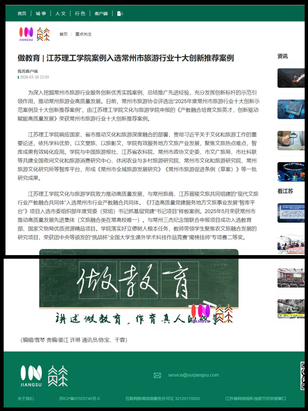我苏客户端、媒体理工:江苏理工学院案例入选常州市旅游行业十大创新推荐案例